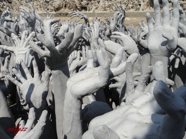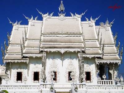 Chiang Rai is located about 3 hours from Chiang Mai. There’s a bus called green bus which goes to Chiang Rai in every 2 hours. I went to Chiang Rai with my French friend. I wanted to see Wat Rong Khun, the white temple, and hill tribe villages to see long neck Karen. It’s pretty easy to reach Wat Rong Khun. The bus will drop you exactly in front of the temple. The position is out of the town, so before reach the town, that’s where Wat Rong Khun is. Wat Rong Khun is amazing. It was created and built by an artist.