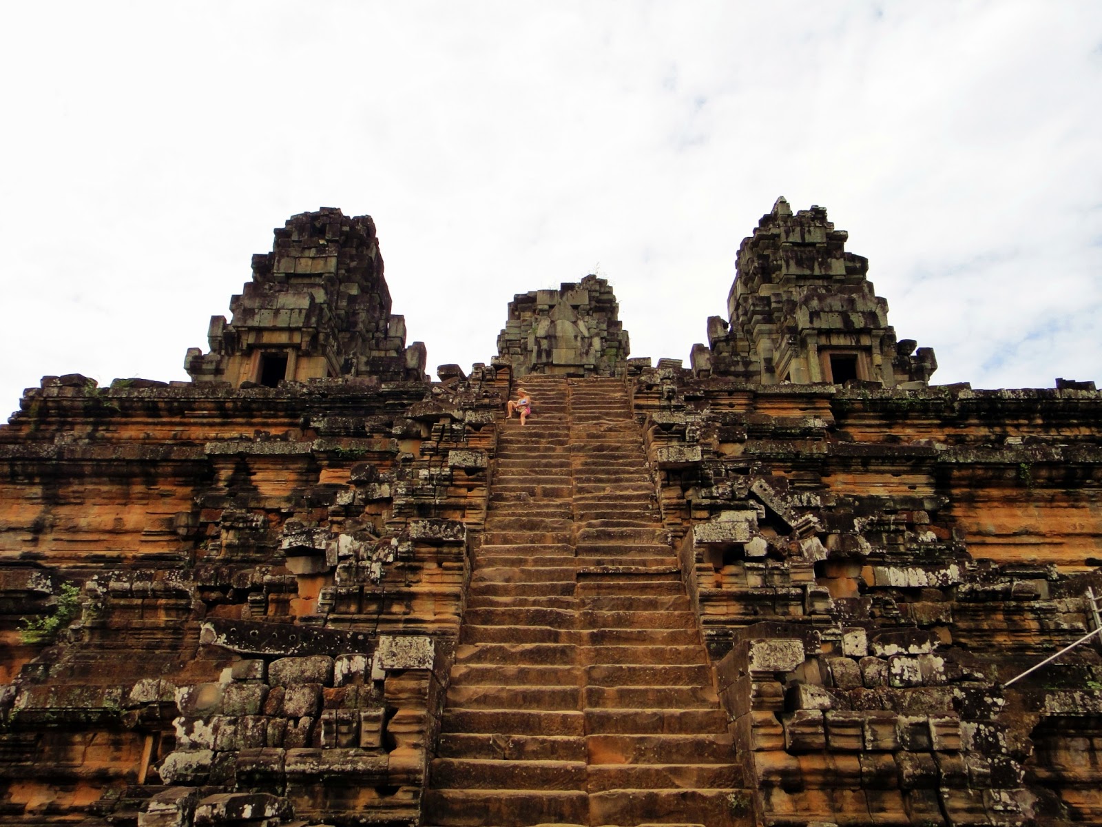 Let me tell you a story. I got into this temple, Bayon, and admired everything, captured everything with my camera, and enjoyed the amazing structure of temple. When I finished and went back to pick up my bike, I couldn’t find my bike!! Cmon, Am I that bad luck? I lost the bike and had to pay for my way back, and get a new bike for the hostel?? Instead of pressing budget, I have to spend more because I lost my bike? I was soo worried. I asked people around that and he wanted me to make sure it’s the right place where I put my bike. I insisted, I told him I was so sure I put my bike here. There’s a policeman nearby who couldn’t really speak english so I asked him. Again, the guy that I asked before asked me back until he said there’s four entrances in this temple. Wait, Something’s not right. I recalled my memory back, it’s different when I got into the temple. There should be a Buddha statue but I didn’t pass through it on my way out. I shouted to the policeman who had walked pretty far looking for my bike, told him I’ll try to find it by myself. I walked around the temple hoping I could find my bike. Guess what?? I was totally forgot about my lost bike after I saw the outer scenery of Bayon Temple…It was soooo amazing! I even stop and ask people to take my pics. Finally I found my bike on the other entrance. I was very grateful to see such a beautiful different side of the temple. Thank you very much God. Actually it’s safe leaving your bike in the temple area, but to prevent loss, lock your bike.