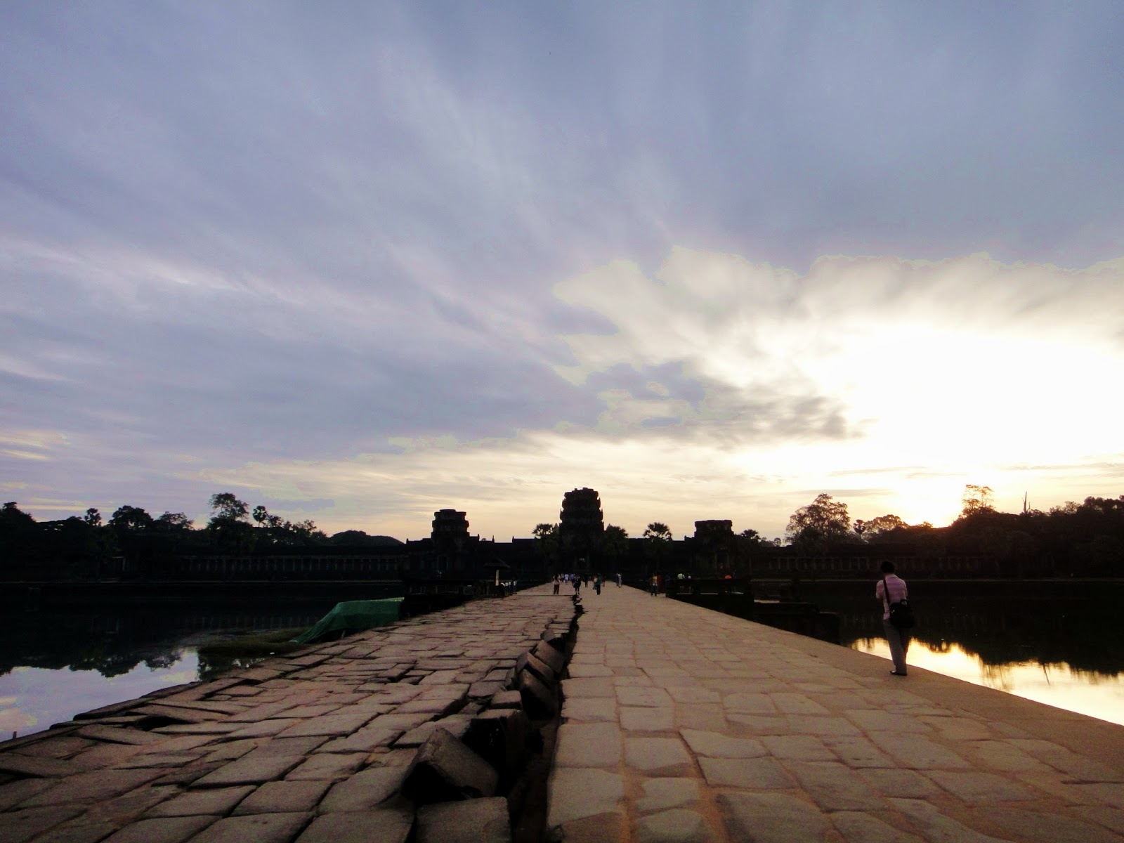 I planned to get up on 4 but i woke up at 5. I’ll be late for sunrise. Shouldn’t be late if I took tuk tuk because it’s only 15 minutes. Different story because I went there by bicycle. I chose to rent bicycle for only $1 rather than using tuk tuk for $20 ! I took the map, then cycled in the darkness. 30 minutes cycling and I could see the dawn lifting up. I didn’t know whether I took the right or wrong way. There’s nobody to ask. It’s getting worst when my bicycle chain loosened. Old bike so I knew how to deal with it. Finally, 15 minutes later I saw the checking point. I was happy, only for a while after they asked me about the angkor pass. I thought it was here and he said, no it’s not here. Then I asked where it was, 10 km return to buy angkor pass. Shit! But then they helped me to buy the ticket with motorbike but I had to pay $2. Sigh. I had one day pass which cost $20.